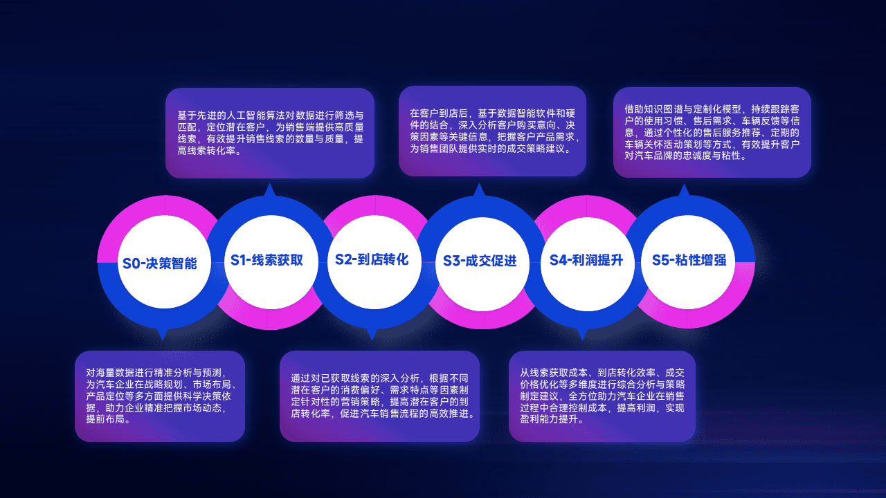 通过拓宽潜在客户来源、、、、优化线索分配并提高到店转化率,,,以增强销售效率。。。同时,,利用线索数据不断优化分析模型,,有效提升转化率,,扩大营销影响力。。。。